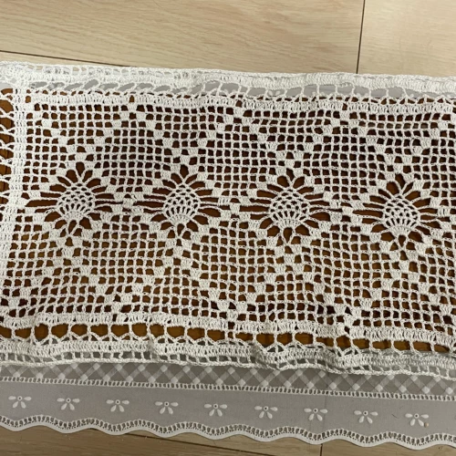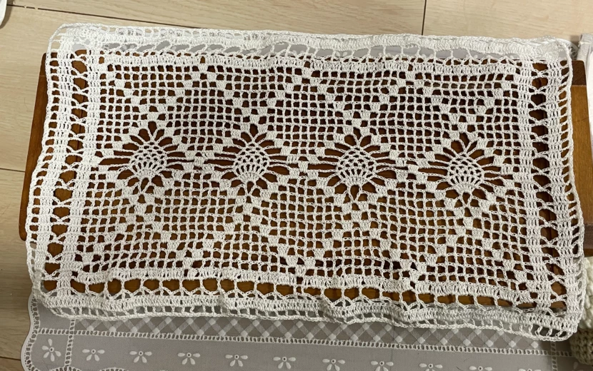 こんにちは~ 年末から頑張って作っていた例の百均ファブリックカレンダー ようやくレース編みのモチーフも縫い付け終わって、ついに完成しましたよ! ↑クロ...