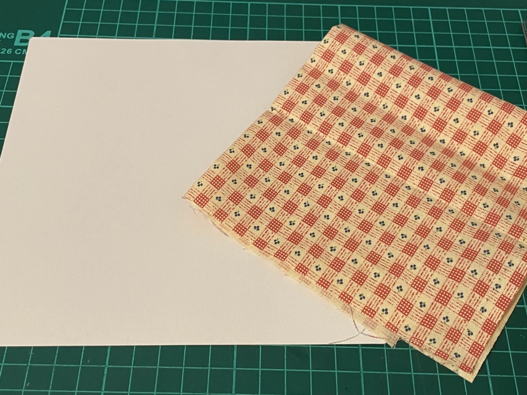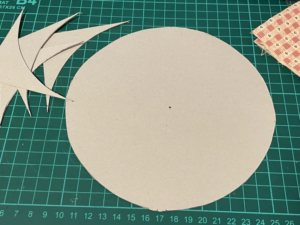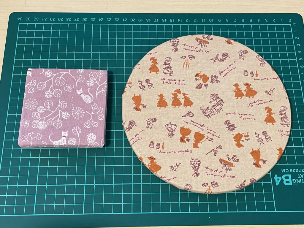 画像の厚紙は17cm角の正方形、布は20cm角のものを用意しました
