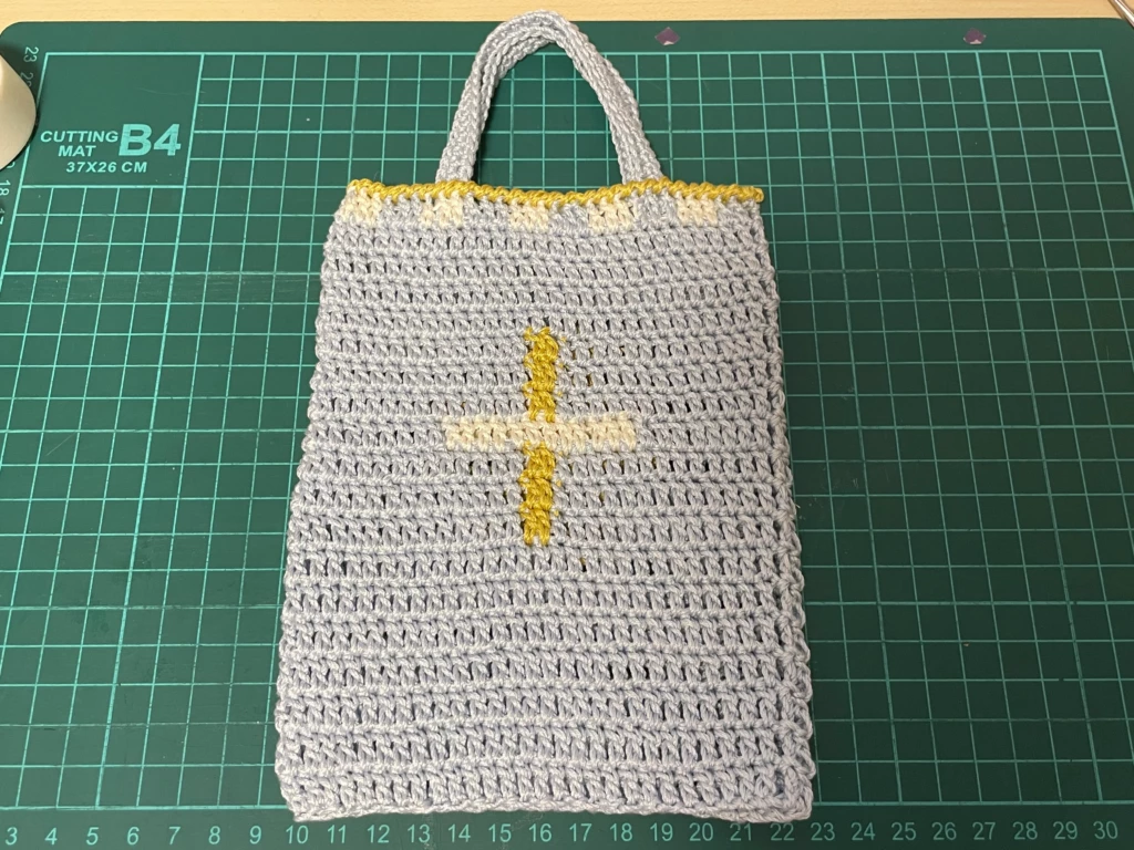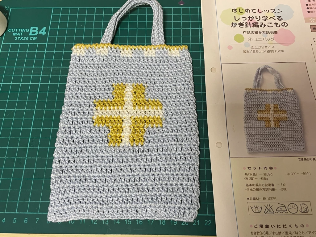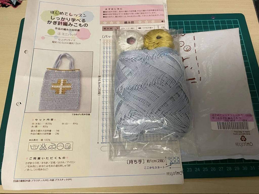 フェリシモの『はじめてレッスン しっかり学べるかぎ針編みこもの』のミニトートです