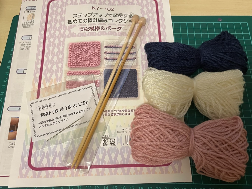 ちなみに、使った編み針は付属の8号棒針でチャレンジしてみました