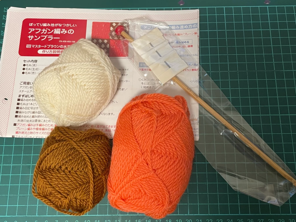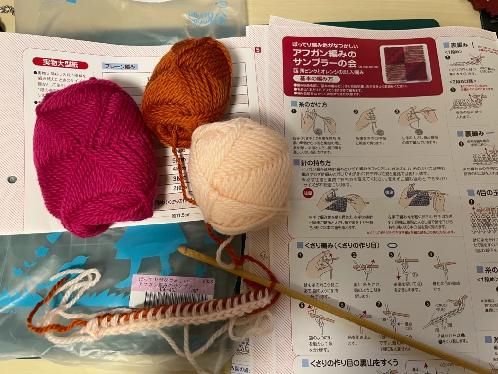 アフガン編みのサンプラーはこの二つしか買ってなかったはずなので、あとは練習に使った百均毛糸を利用して、本を読みながら幾つか練習しようと思います
