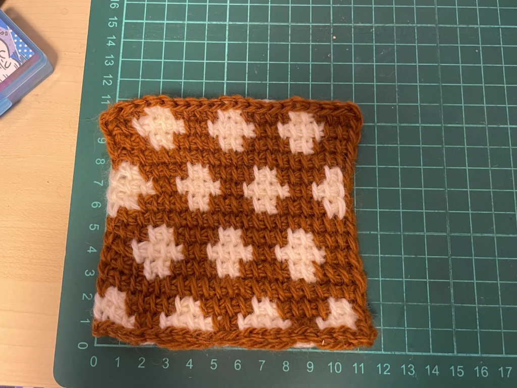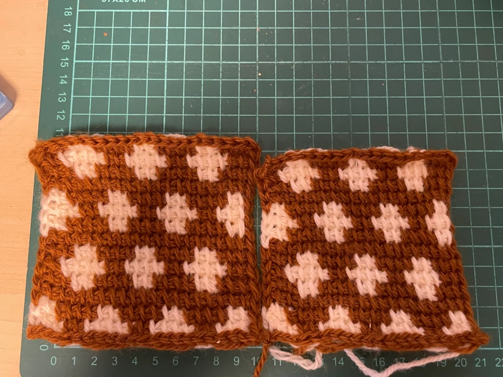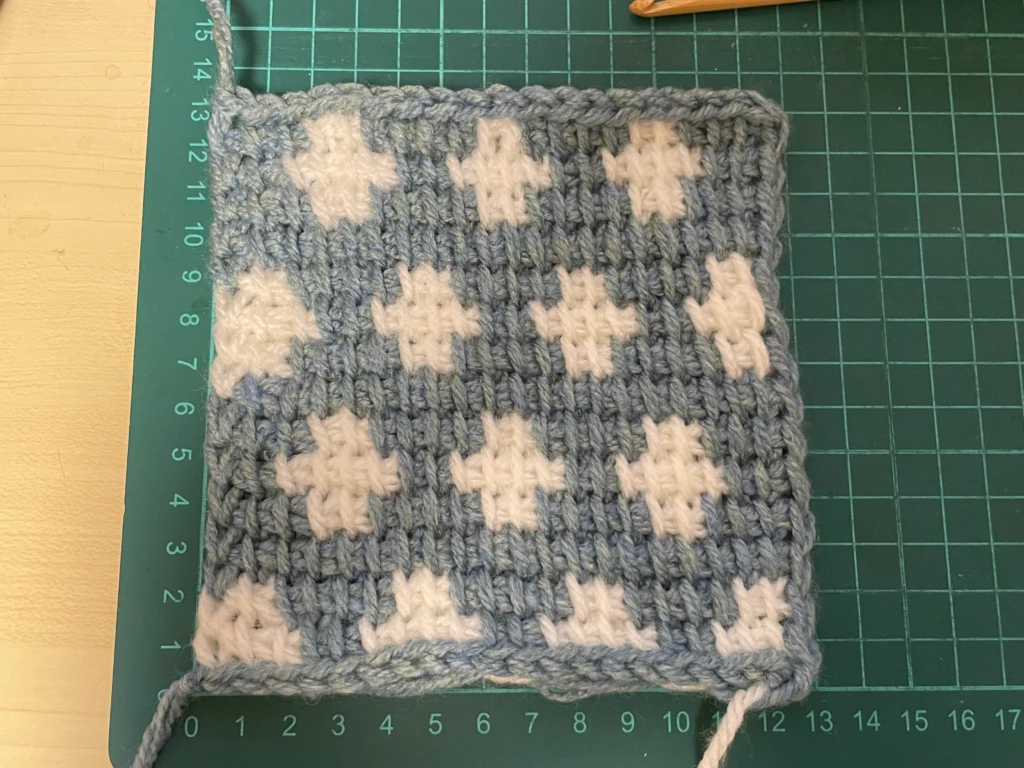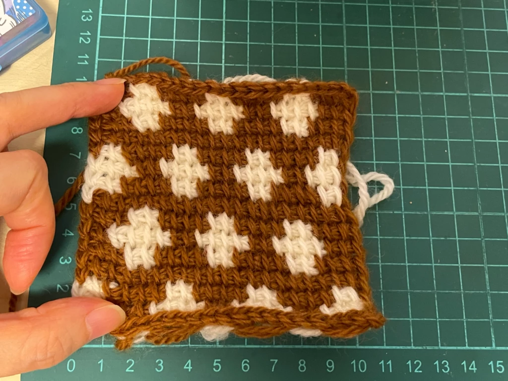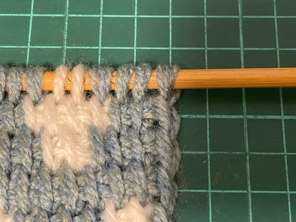 ↑あみぐるみなどで色替えすることはありますが、ちゃんとした編み込み模様は初めてかも…