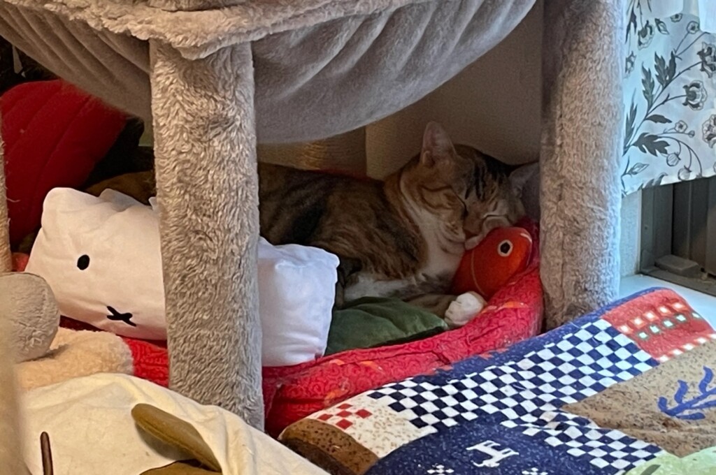 ↑毎回いつの間にか猫ベッドに入ってる魚のぬいぐるみ、娘舞ちゃんが枕に使っていることが判明して、可愛くて写真を撮ってしまいました。今度から掃除のあとにちゃんとそこに戻しておくね笑