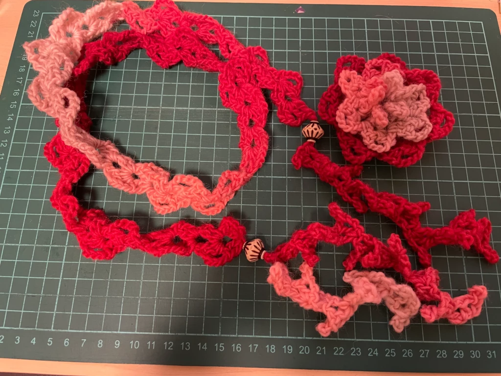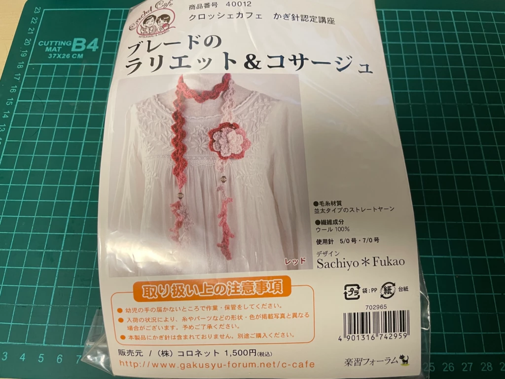↑ラリエットのレッスンキット。こういう花のデザインも可愛いですね