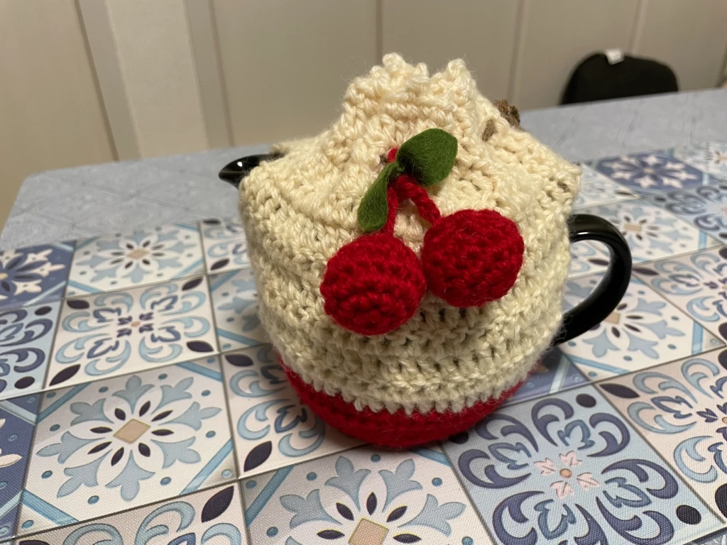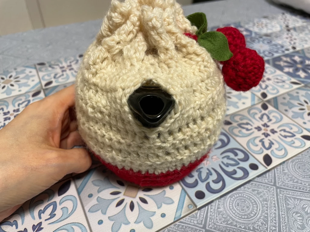 ↑こちらは上からカポッと被せるティーコジーのキットみたいです。ボンボン帽子みたいで可愛いですね