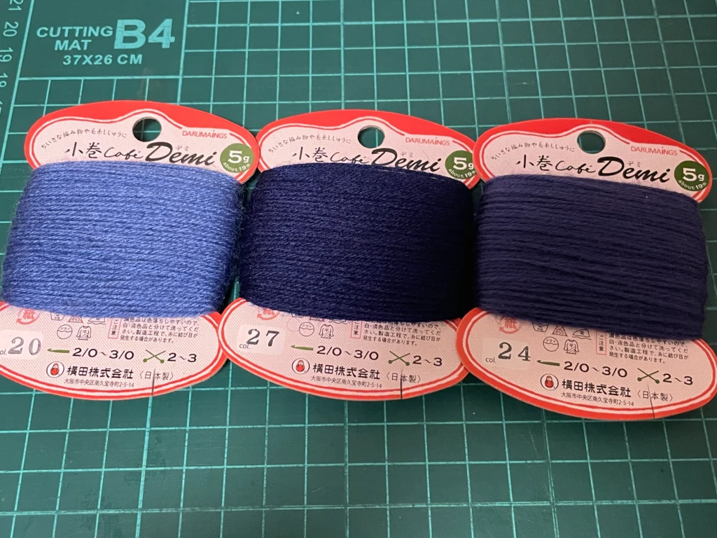 ・水色とオリーブの編み心地はかなり似ているものの、水色の方が引き抜きの際にやや糸割れが起こりやすく感じる