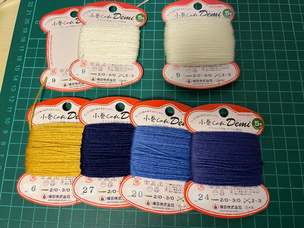 ↑編み図では番号じゃなく色で表記されてたので、どれがどの色かちょっと悩みました笑