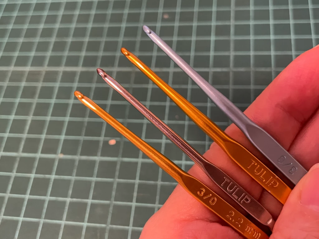 こちらは普通に編む……予定だったのですが、ふと思い立って手元にあるTULIPの色んなかぎ針を使って編み比べてみることになりました