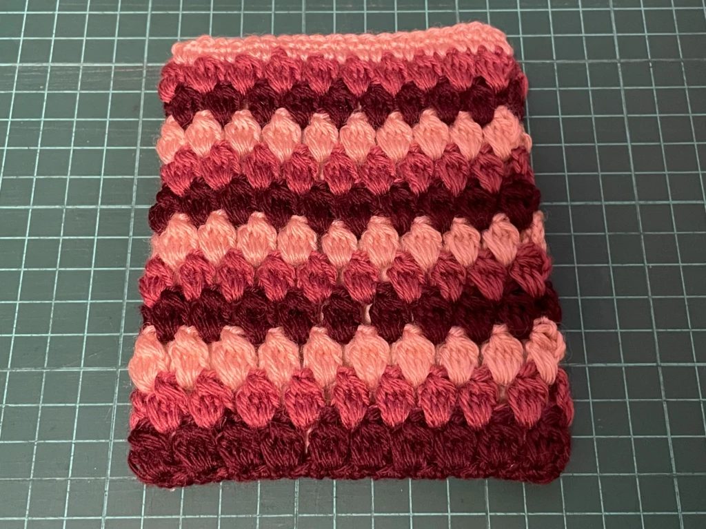 ↑色と相まって、ポコポコした編地の模様がミックスベリーに見えて可愛いです