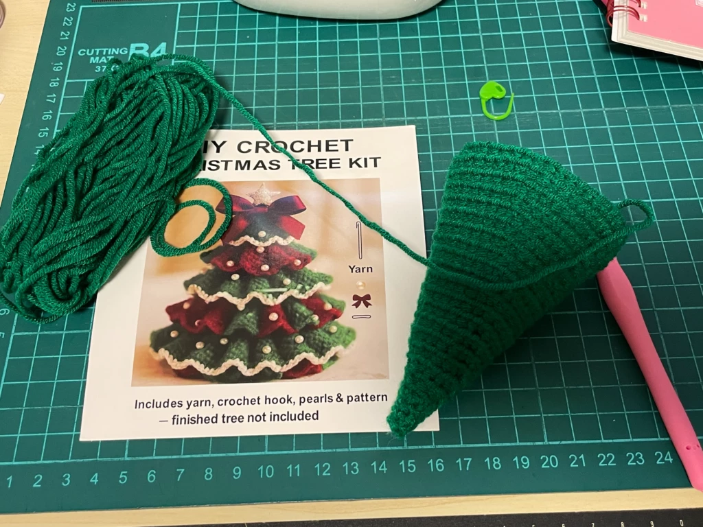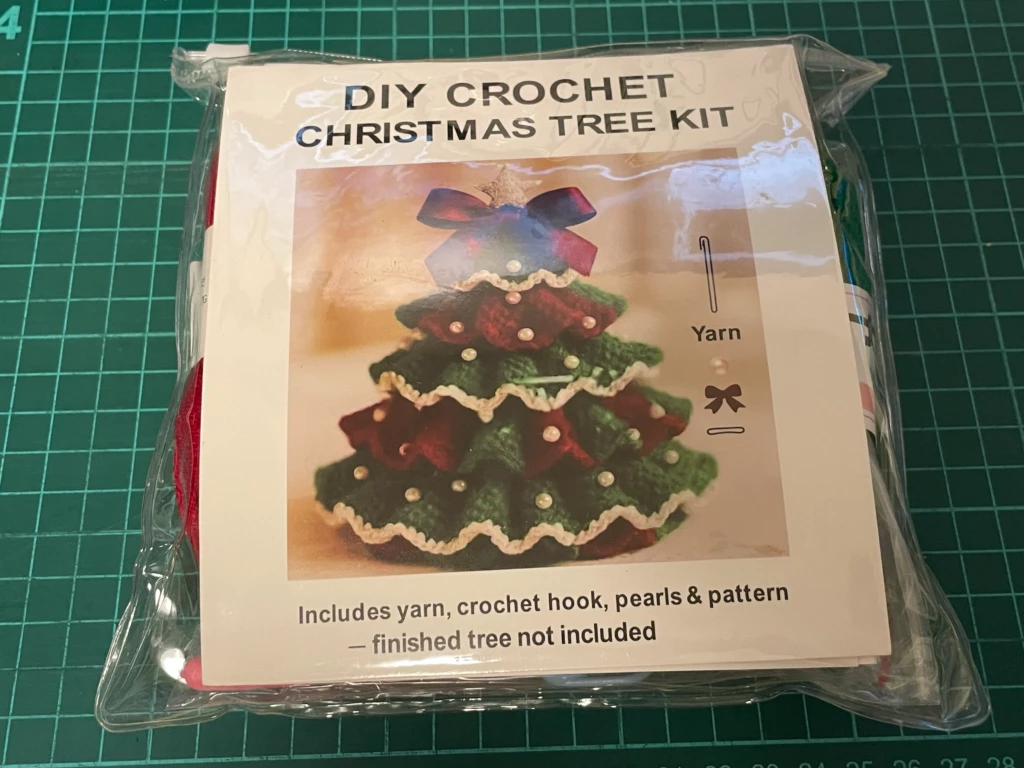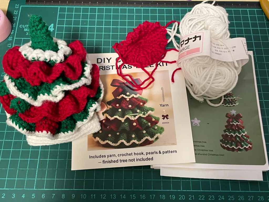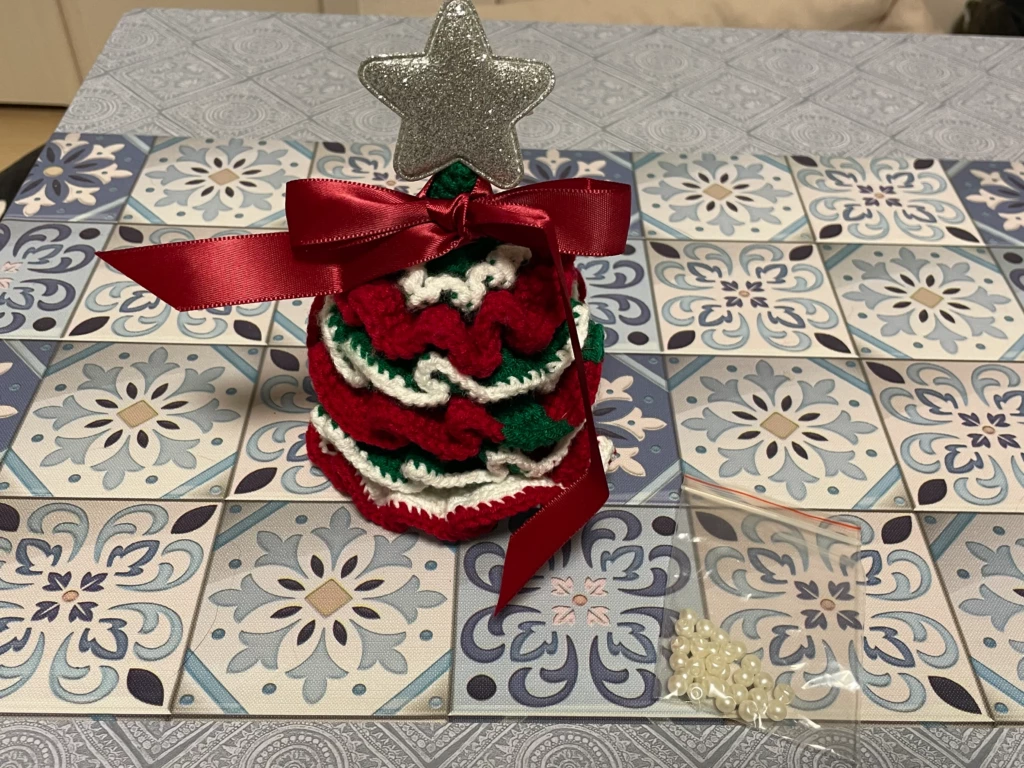ちょっと……編み上がりが不服でビーズを縫い付けるかどうかまだ悩んでいるのですが、一応ツリーの体裁は編めました