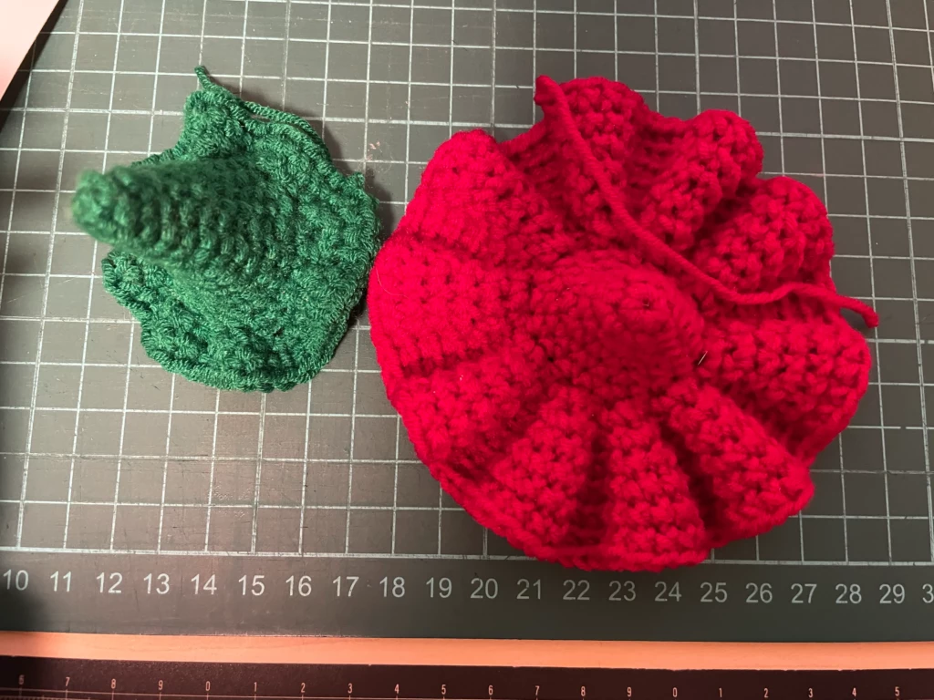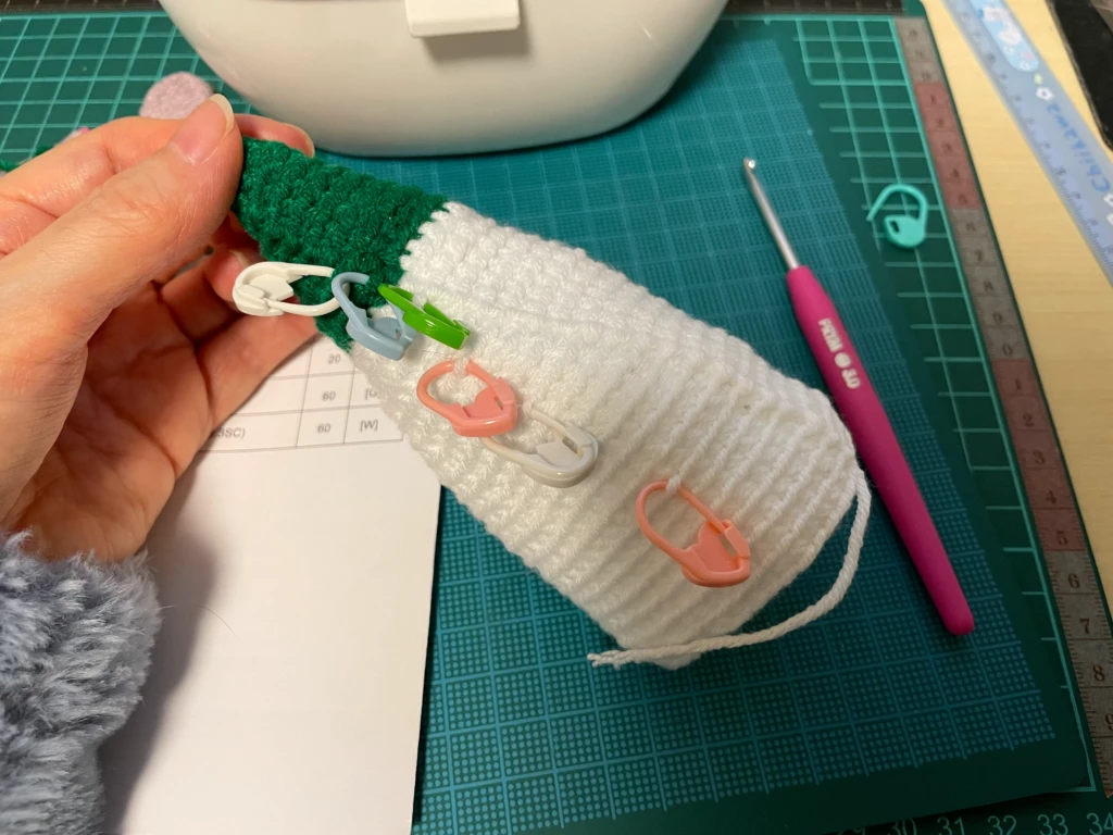 ↑最終段を白糸ベースにしたり赤と緑の配色を入れ替えたりしながらなんとか編みました…