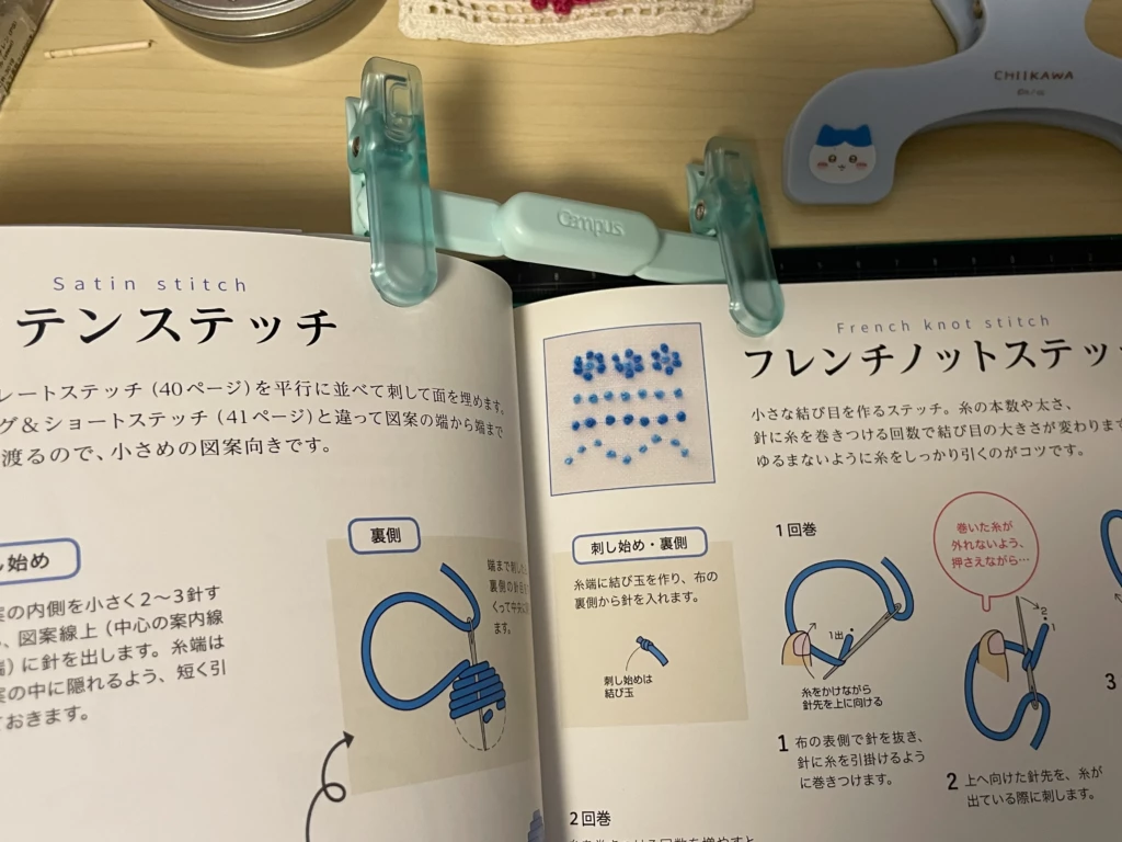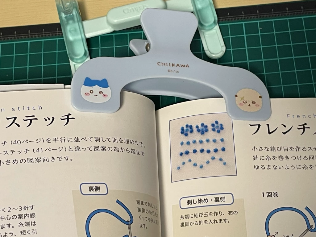 手元にある厚めの手芸本(先程載せた刺しゅうの基礎本です笑)を試しに挟んでみました