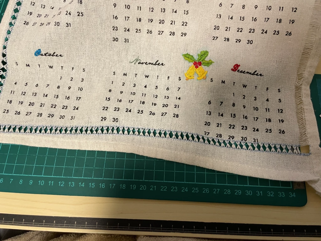 最後は、例のファブリックカレンダーの進捗状況を載せてみます