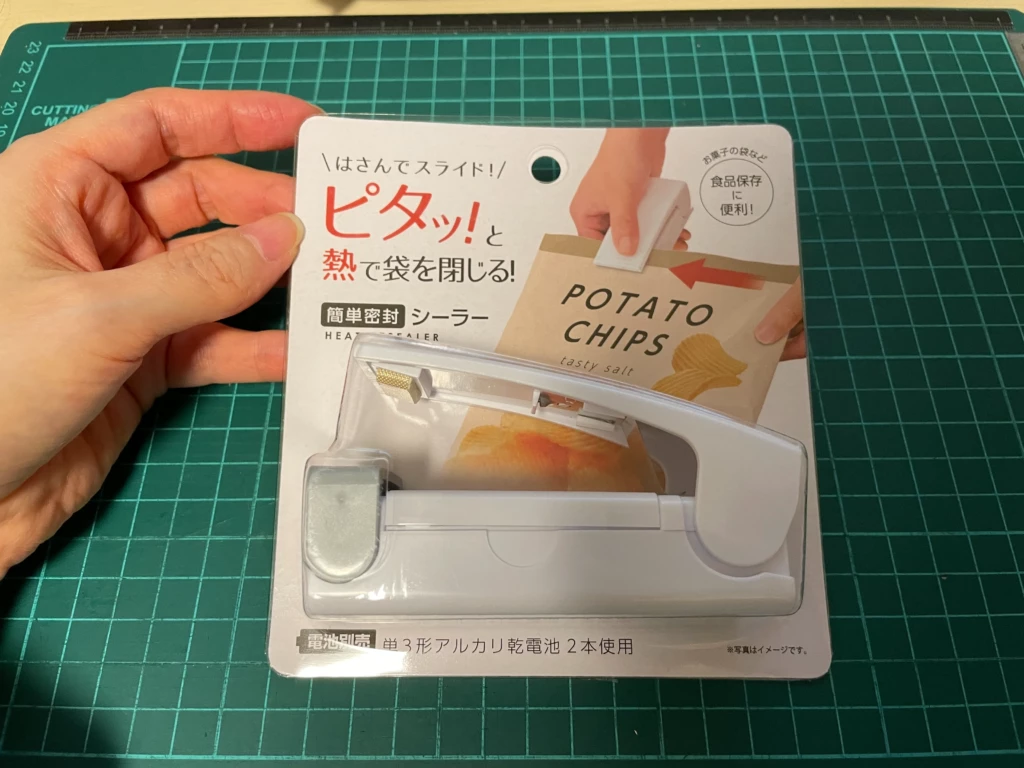 うちは袋もののお菓子はあっという間に食べちゃうし、調味料系は瓶に移しちゃうしで、シーラーの必要性は感じてなかったのですが、最近ハンドメイドで使ってる方をちょくちょく見かけて、100円なら……と思って買ってみました
