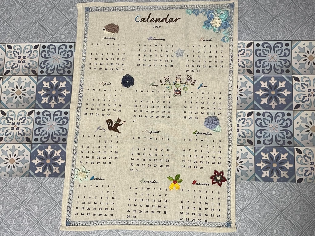 年末から頑張って作っていた例の百均ファブリックカレンダー