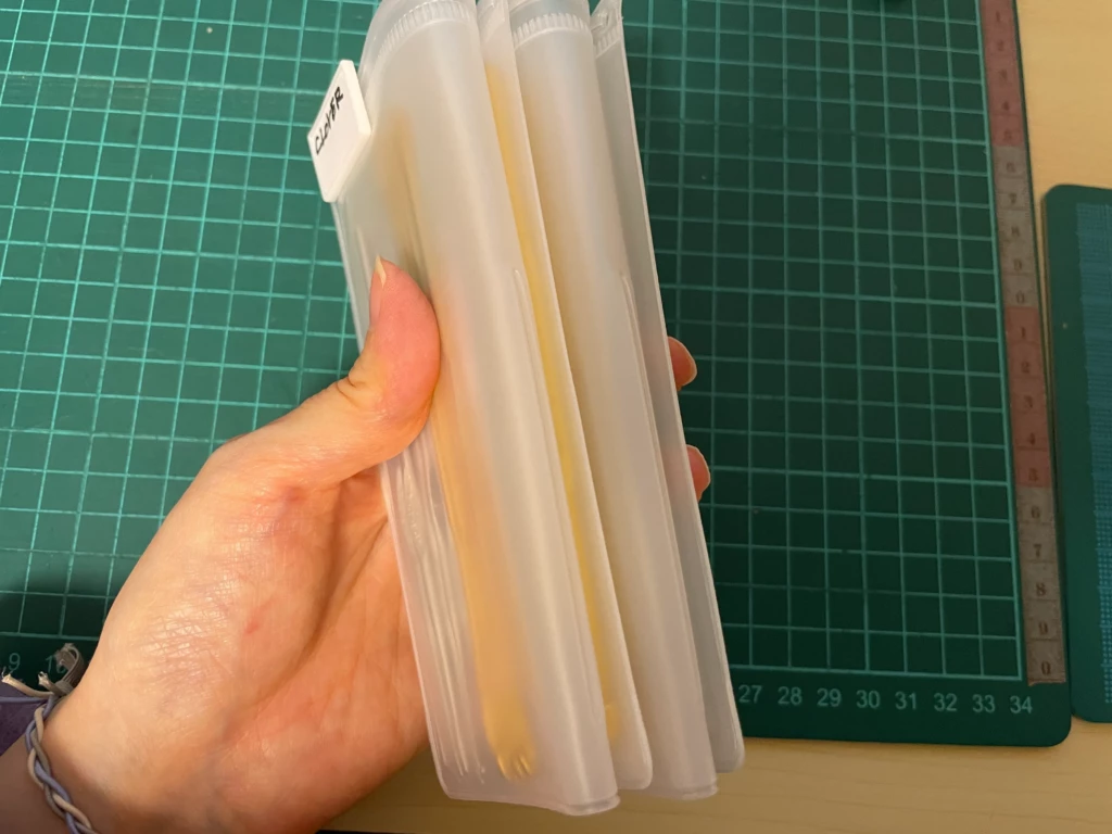 ↑柔軟性のあるEVAポーチなのでこんな感じで畳んでかぎ針収納のカゴに収納してます