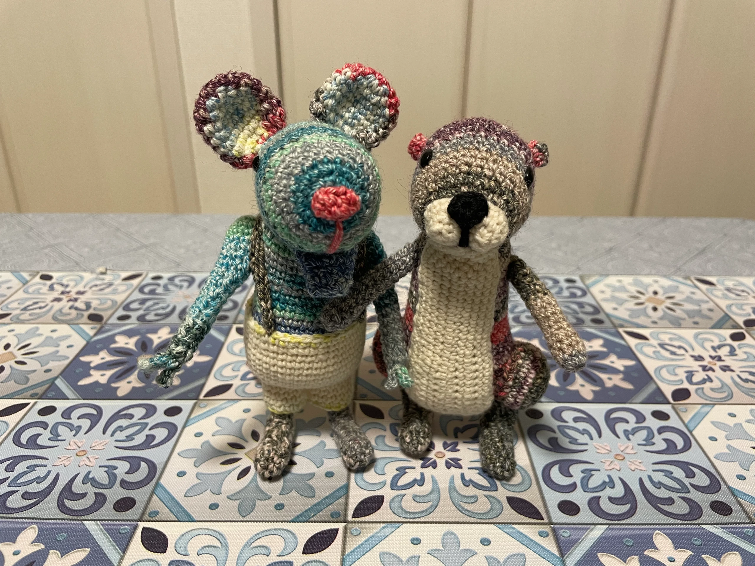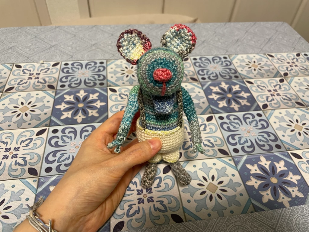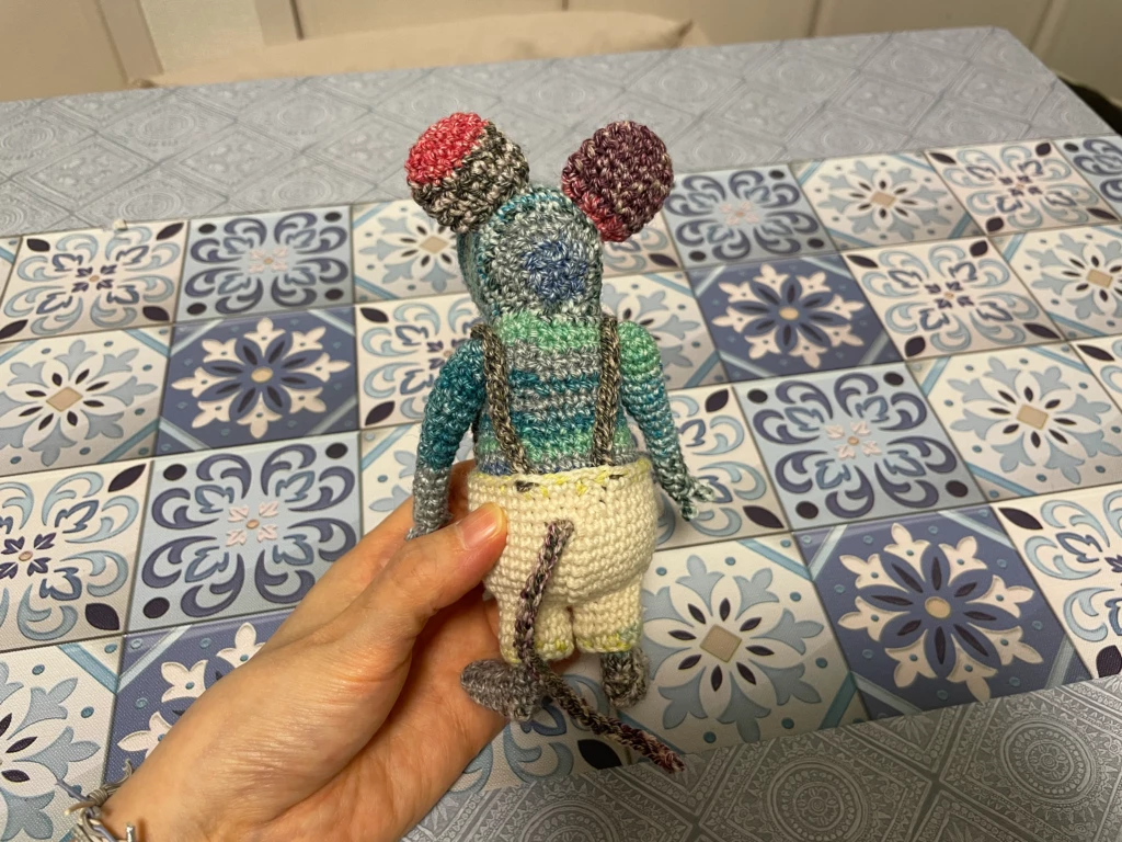 ↑実はかわうそのティモシーよりもビッグサイズ。鼻と顔の刺しゅうはティモシーの糸、耳の中はサイモンの糸、目は他のあみぐるみキットに入ってた予備の目パーツを使いました