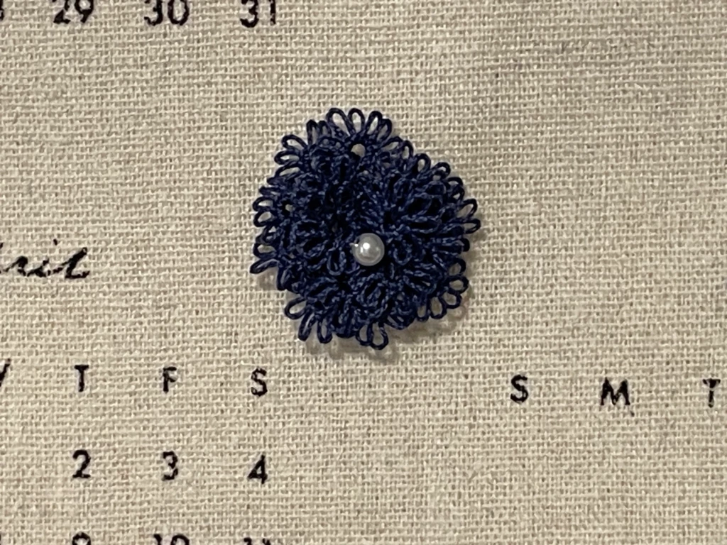 ↑かけはぎした場所に沿ってタティングを縫い付けて、共糸のクロッシェモチーフを添えました