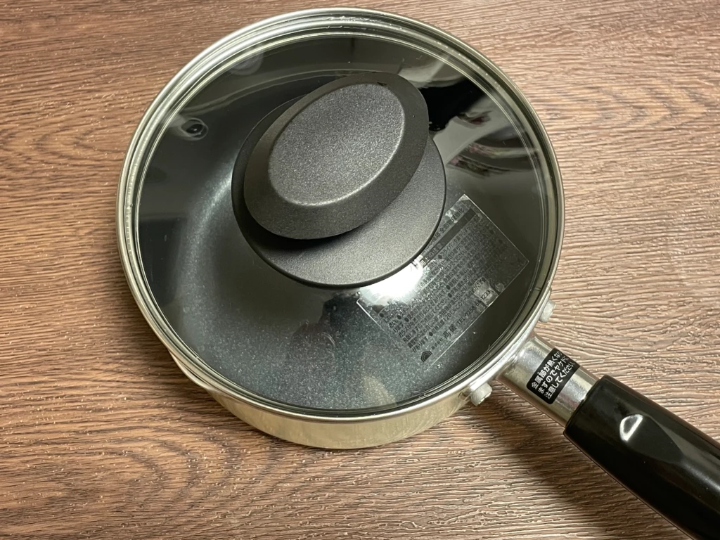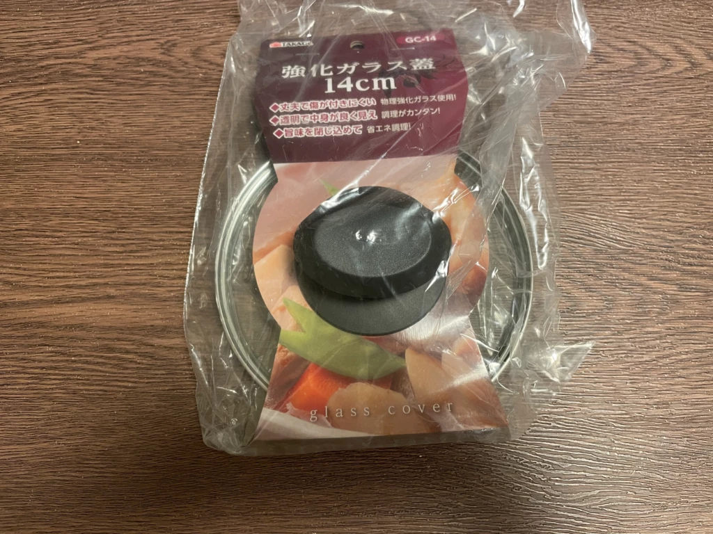 ↑14cmサイズの強化ガラスフタ。蒸気穴無しのタイプです