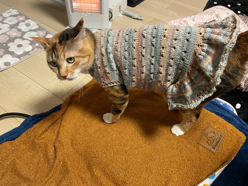 ↑ケープ、同じデザインのものはもう販売されてないみたいでした…。棒針編みのケープです