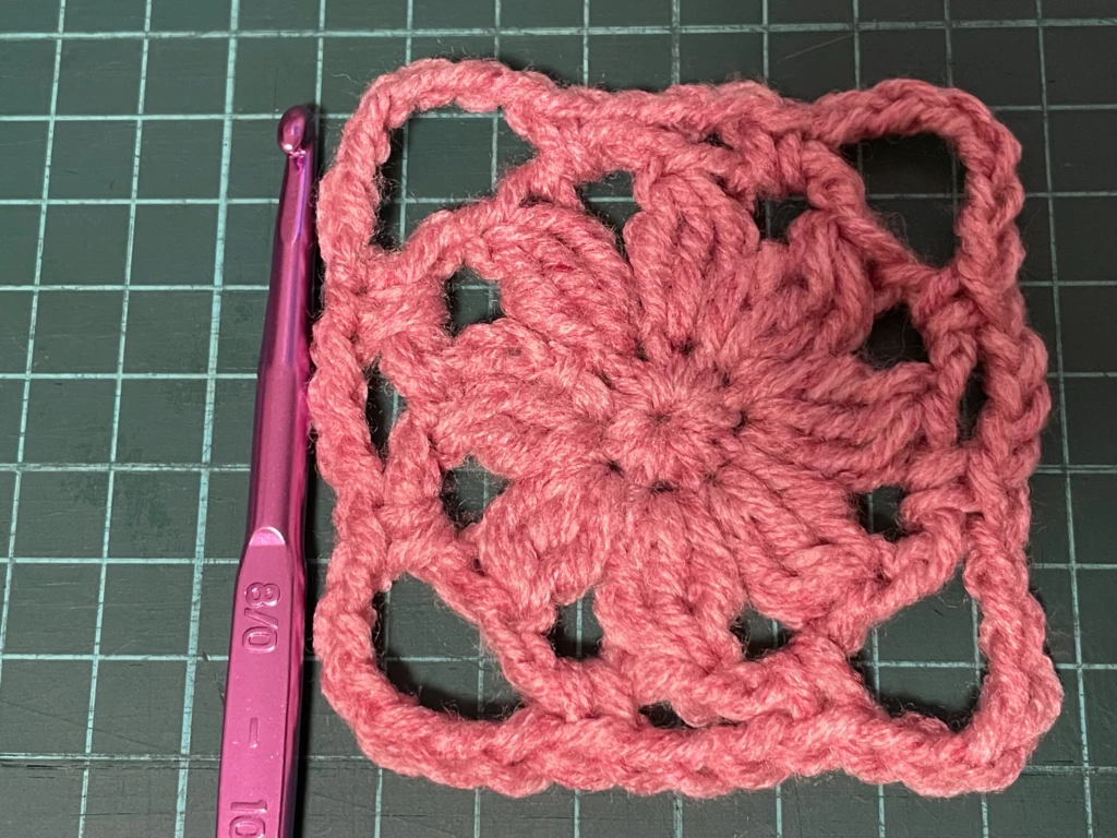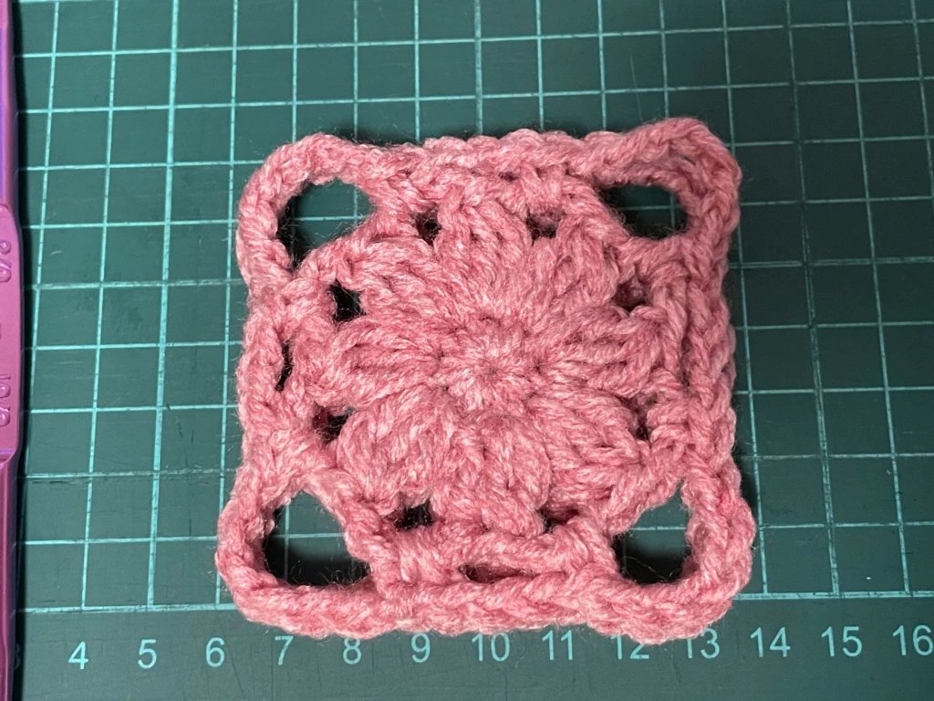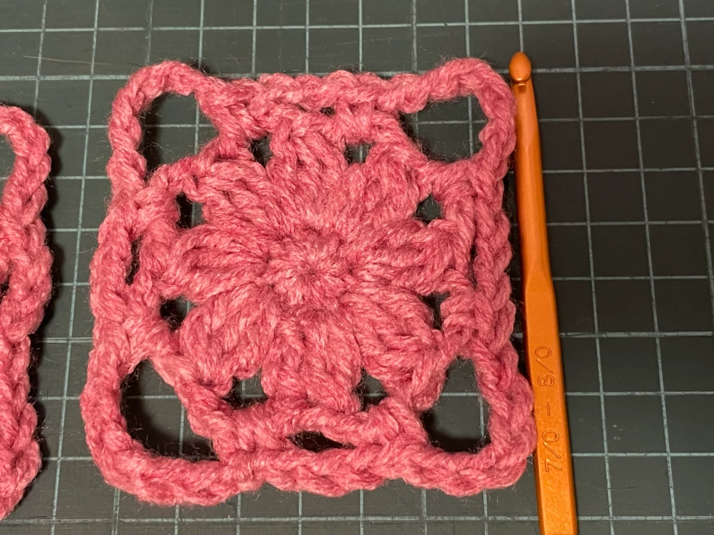 ↑1つ目のモチーフを編んだところ、ちょっと編みにくいな…と思って変更することに