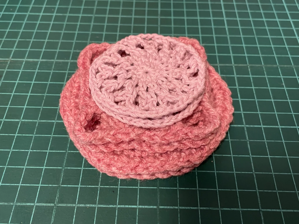 ↑アップはこちら。クロバーです。糸はアクリル100%の同じ糸で編んでます