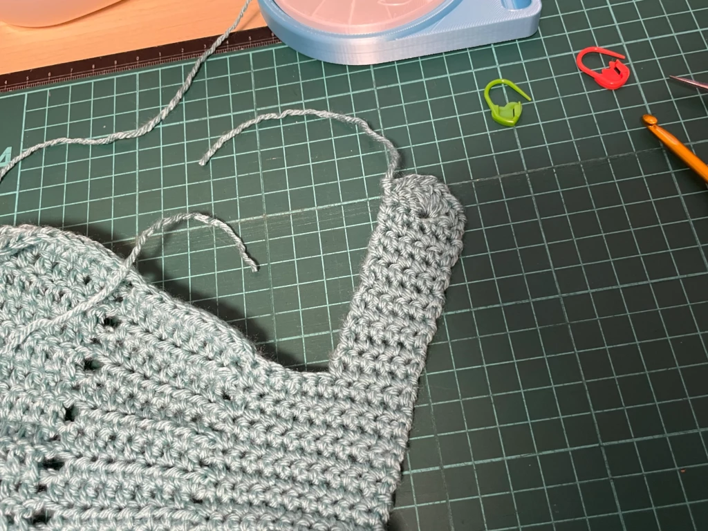 ↑ベルト部分、1本目は本体から続けてそのまま編み進めて、2本目はその横に新しく糸をつけて編む方法でした