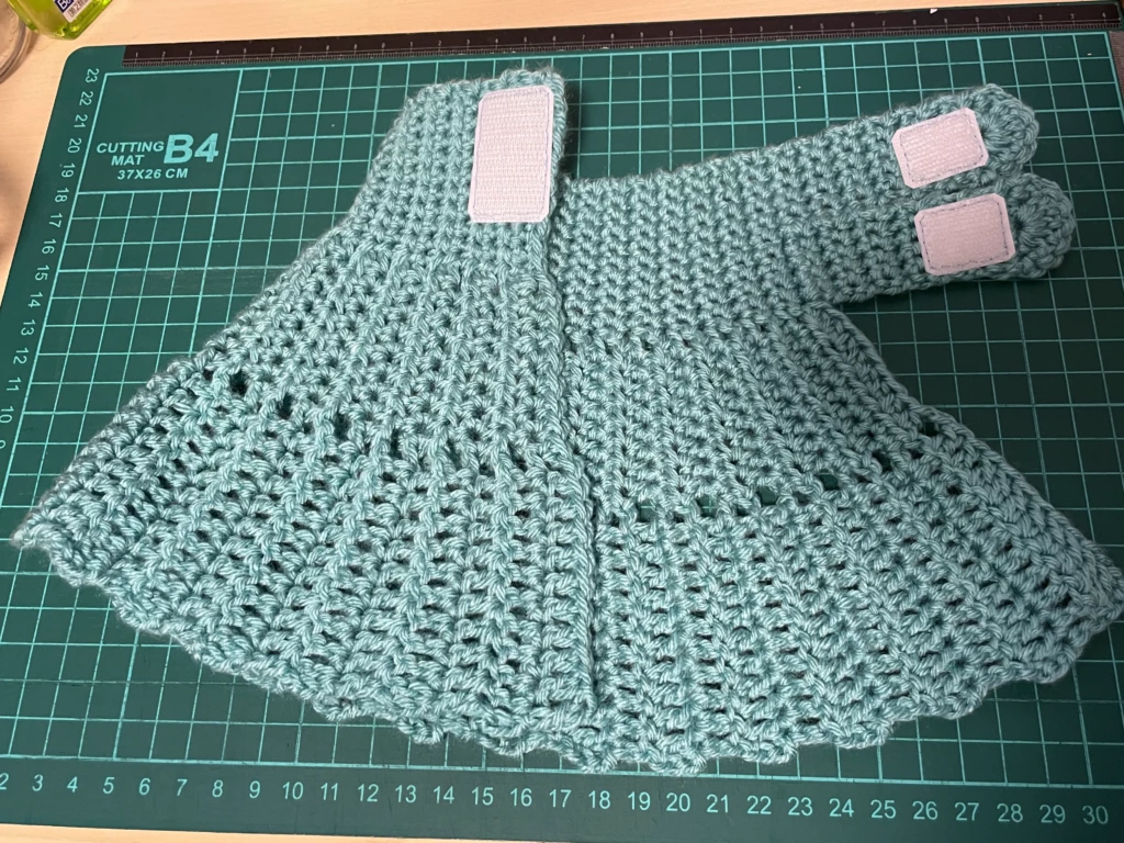 マジックテープの縫い付けがちょっと面倒ですが、シンプルなデザインなのでかぎ針編みに慣れてる方なら半日くらいで完成できると思います