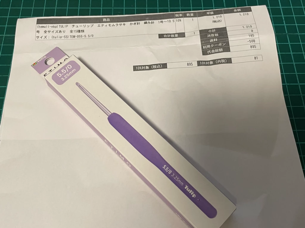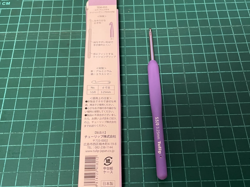 ↑5.5/0号かぎ針。持っていないサイズなので興味津々です