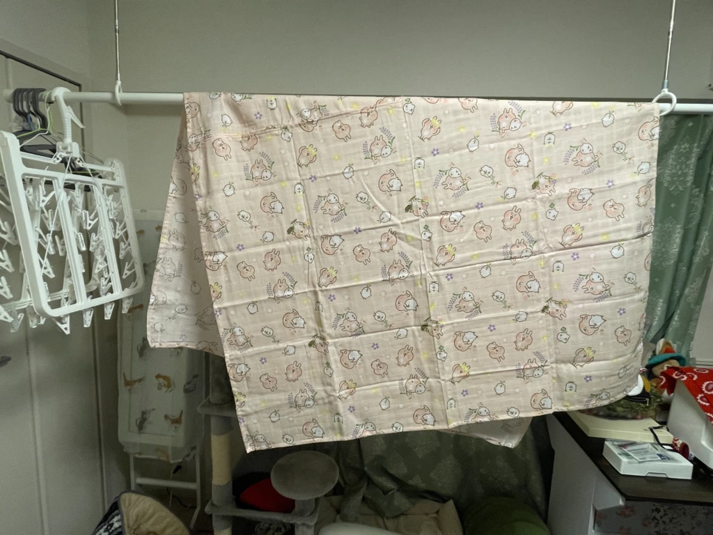 ↑大人サイズのガーゼケット完成。ちょっと薄いのでダブルガーゼを重ねるか悩み中