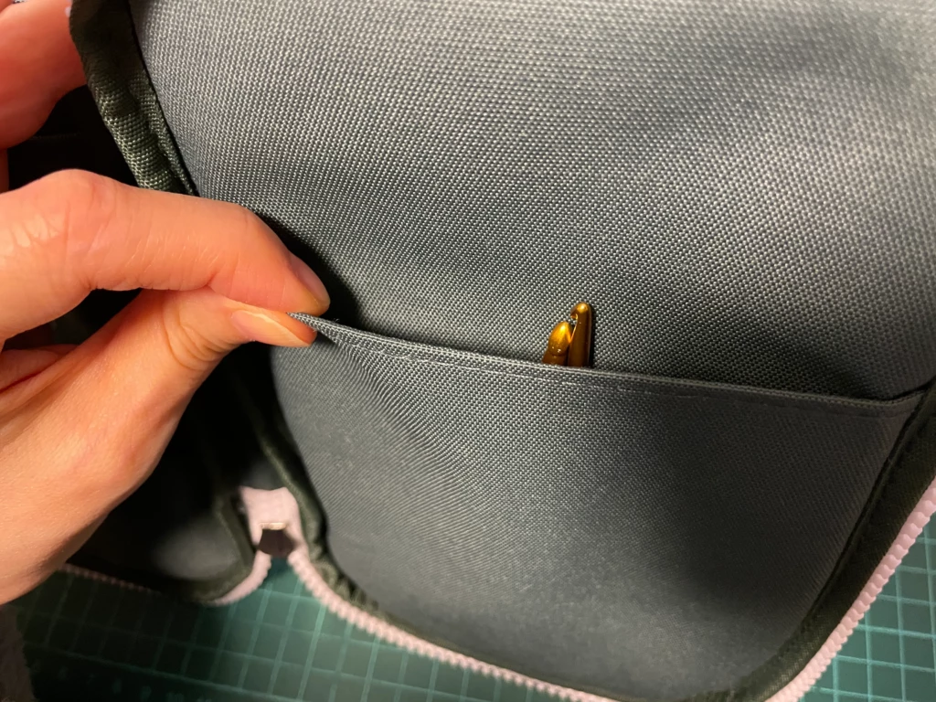 ↑右のポケットはかぎ針を入れると隠れて見えなくなります
