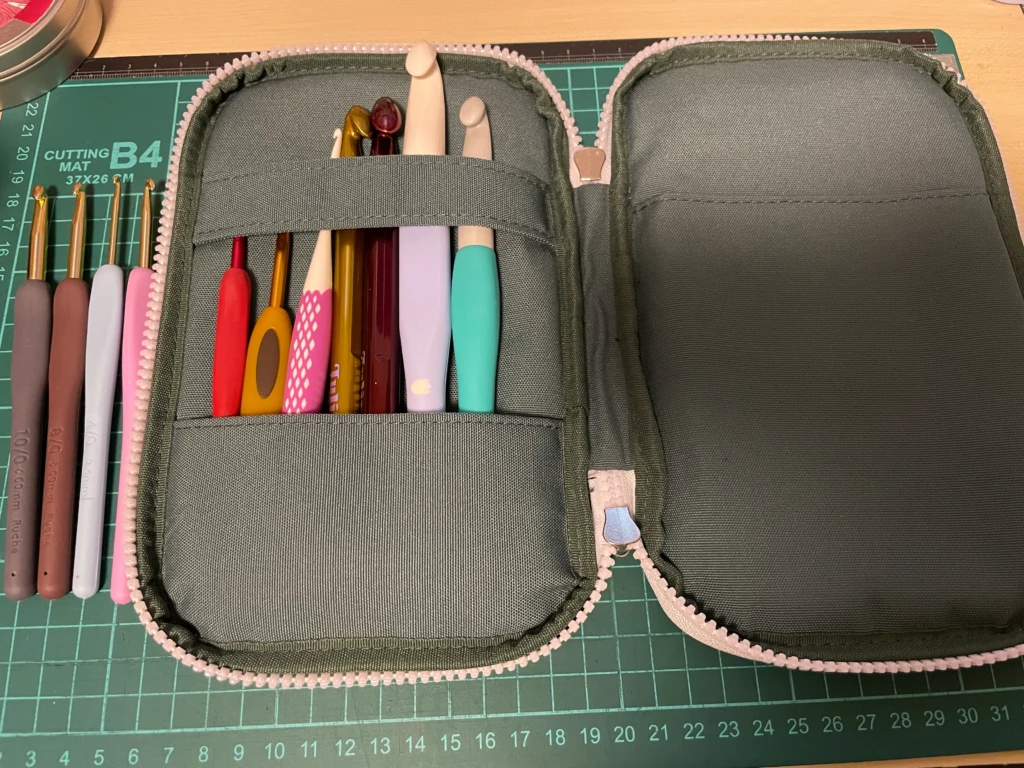 ↑ペンポーチとして売られていた300円商品なのですが、かぎ針入れになるかな?と思ってお迎え