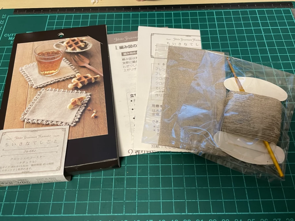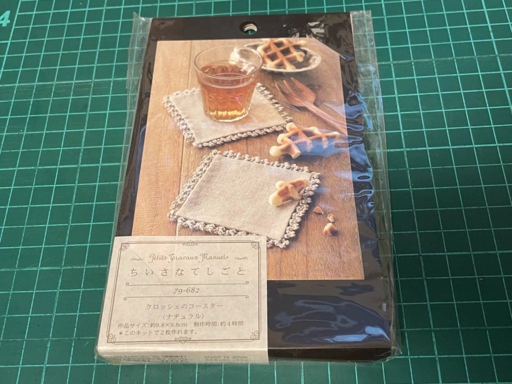 一つは、クロバーの『ちいさなてしごと』で、クロッシェコースターキット