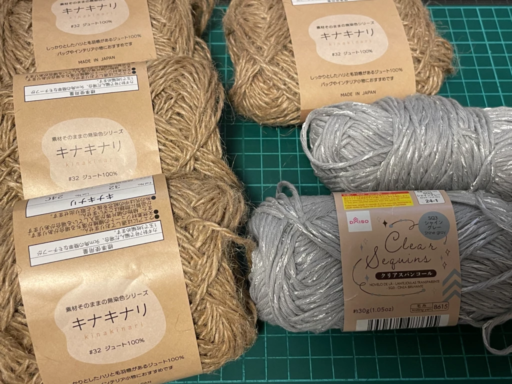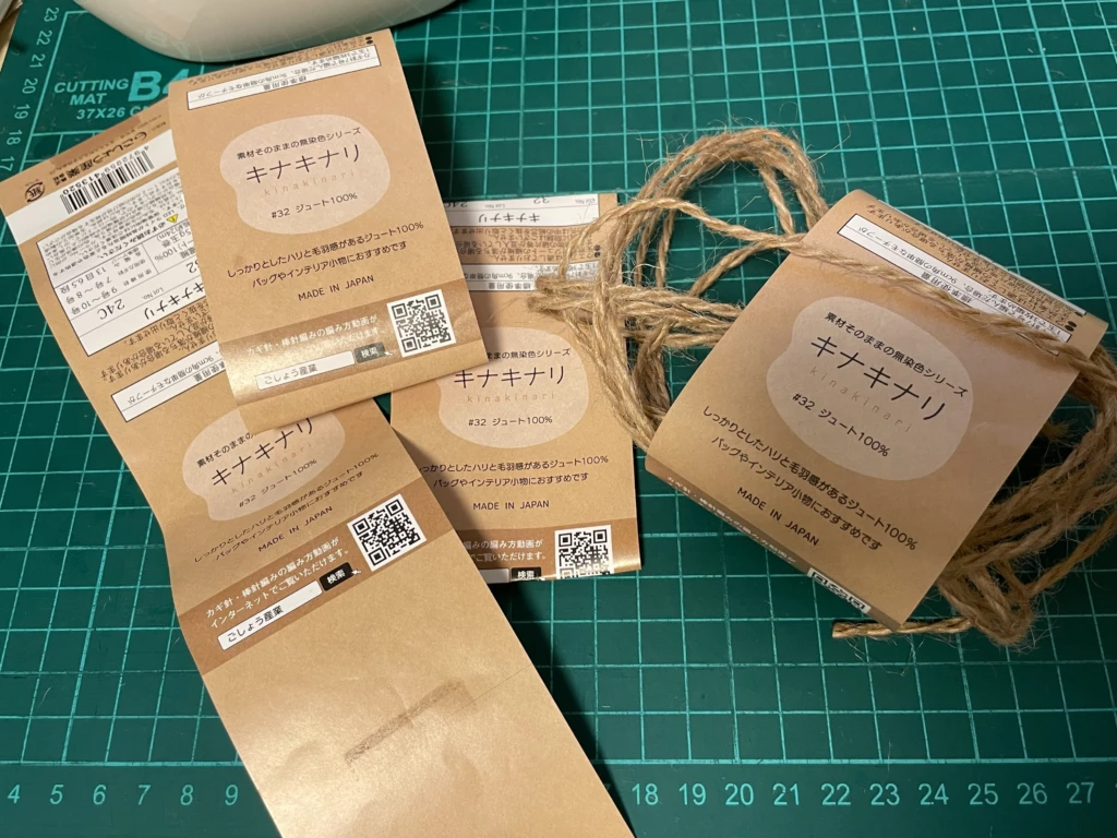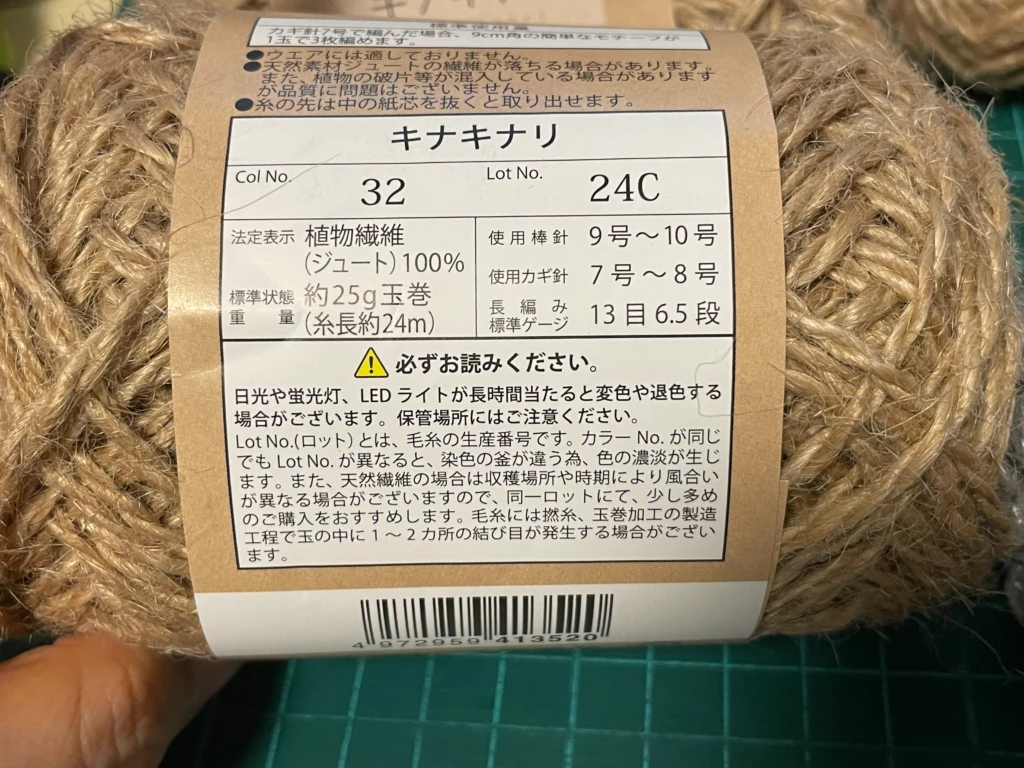↑こちらはハマナカのジュート100%糸。今年はセリアもキャン・ドゥもキナキナリやジュート糸は出てないみたいです