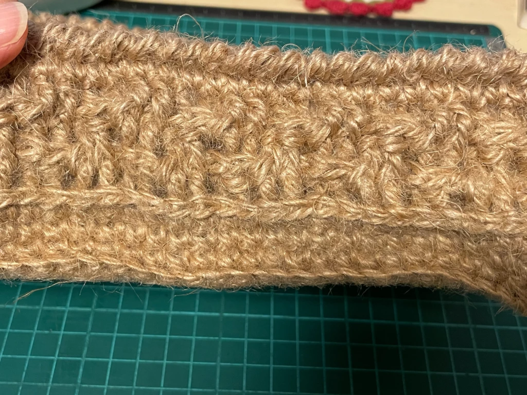 ↑何度か編んでは解いて、結局ジュート100%のキナキナリを使うことにしました