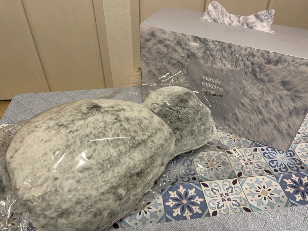 ↑こちらはニッセンの猫クッション。大人気で以前は入手困難でしたが、最近は注文も落ち着いてるのかな?