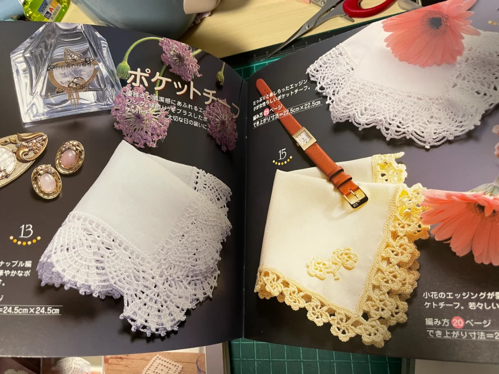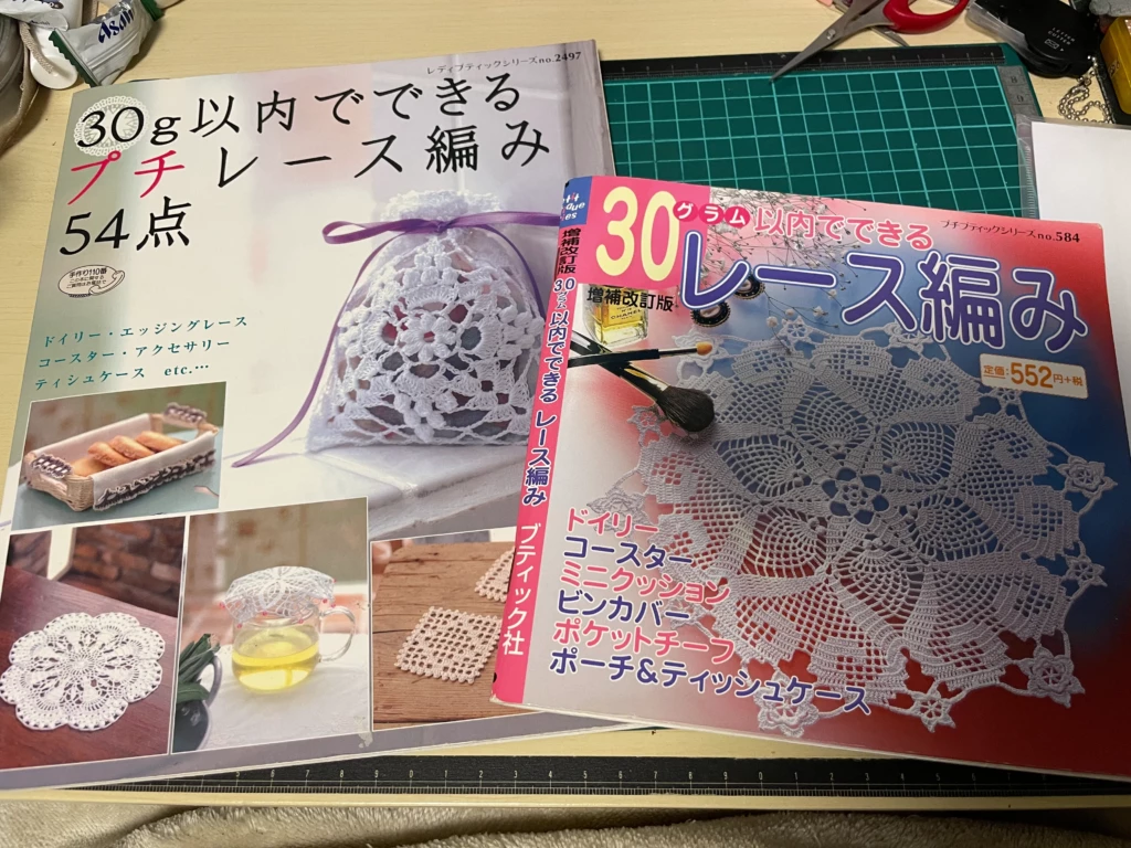 最近のレース編みと違って細い糸をふんだんに使った作品が多いので、材料を揃えるのも編むのもなかなか大変そうですが、頑張って編みたいと思います